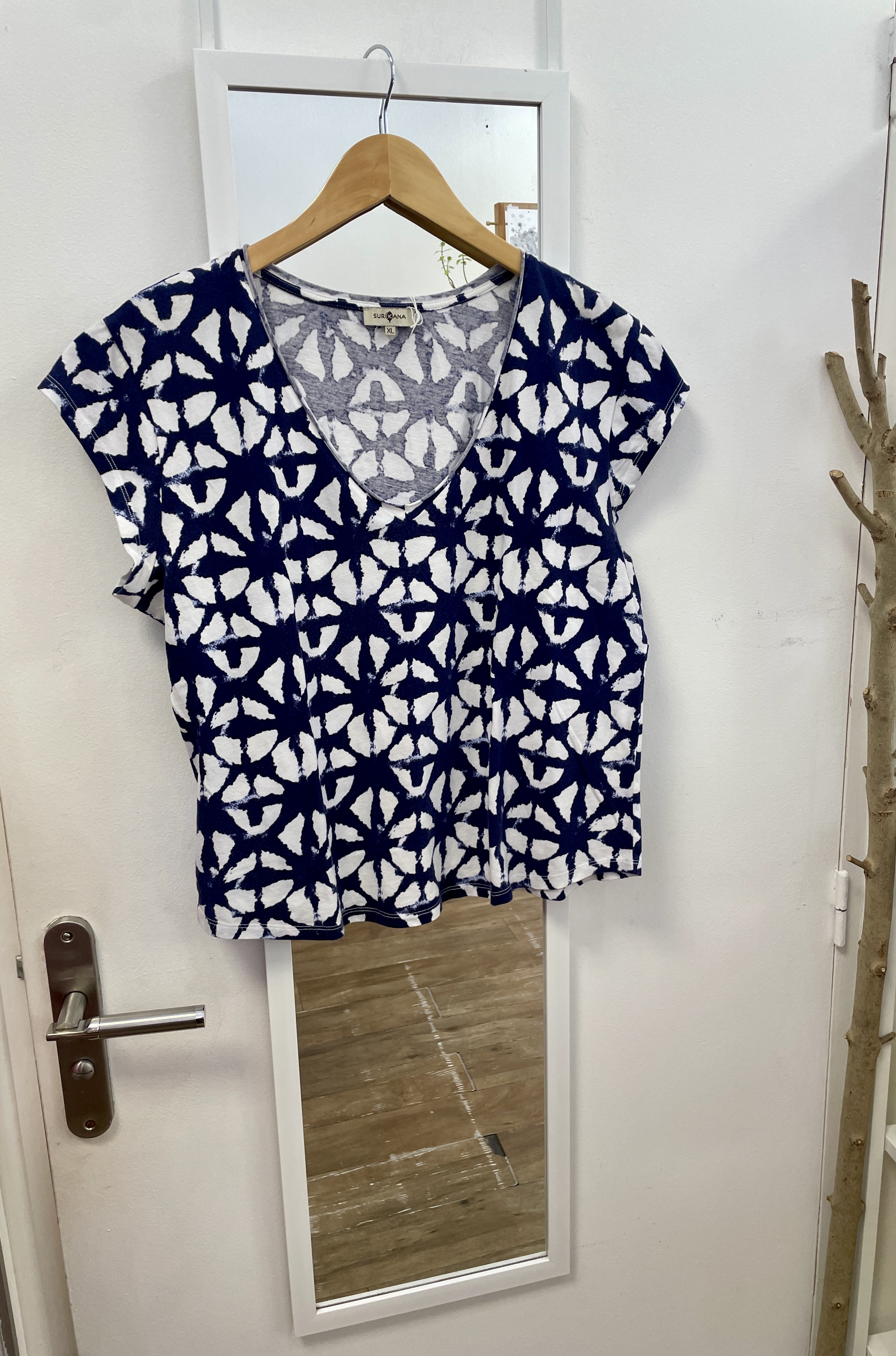 Top rayé avec dentelle sur le décolleté et petit nœud dans le bas